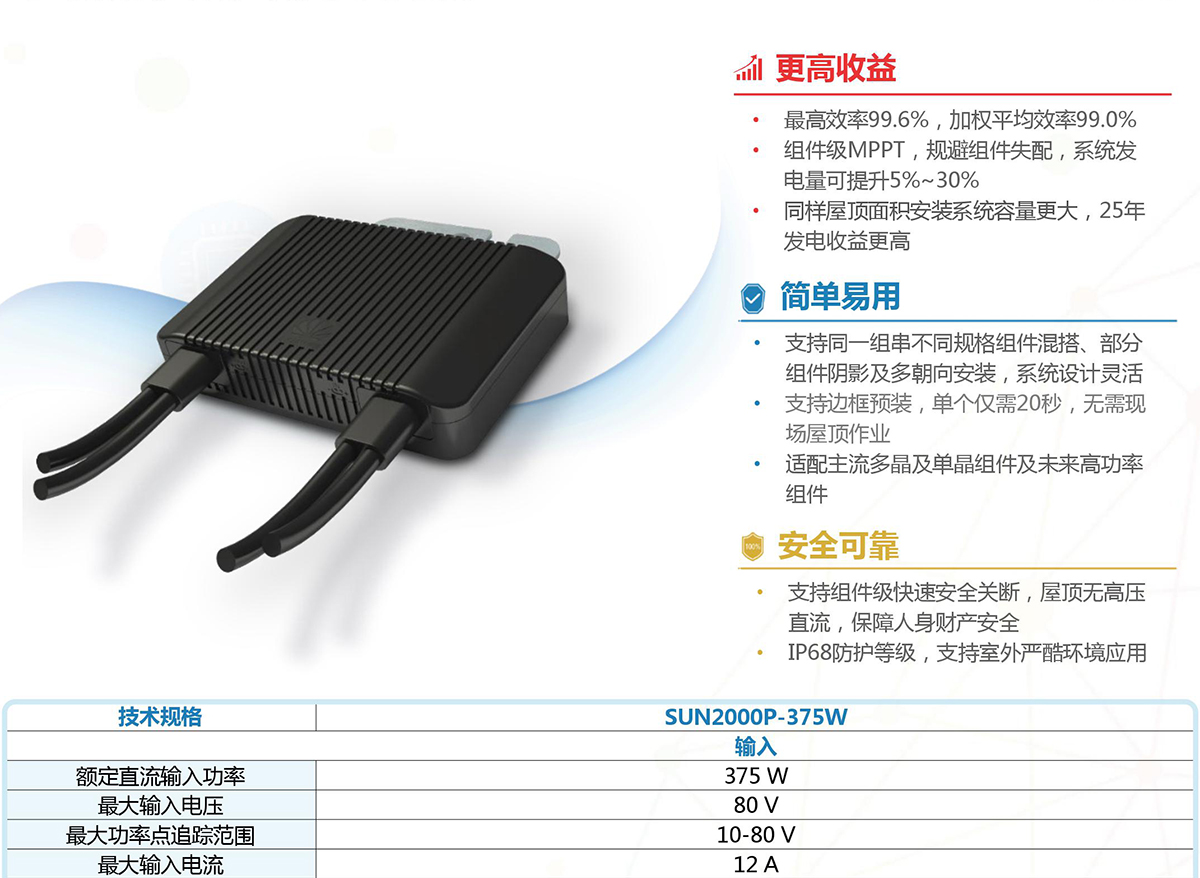 一、智能光伏優化器轉換效率高,適配當前主流多晶、單晶組件并支持未來演進